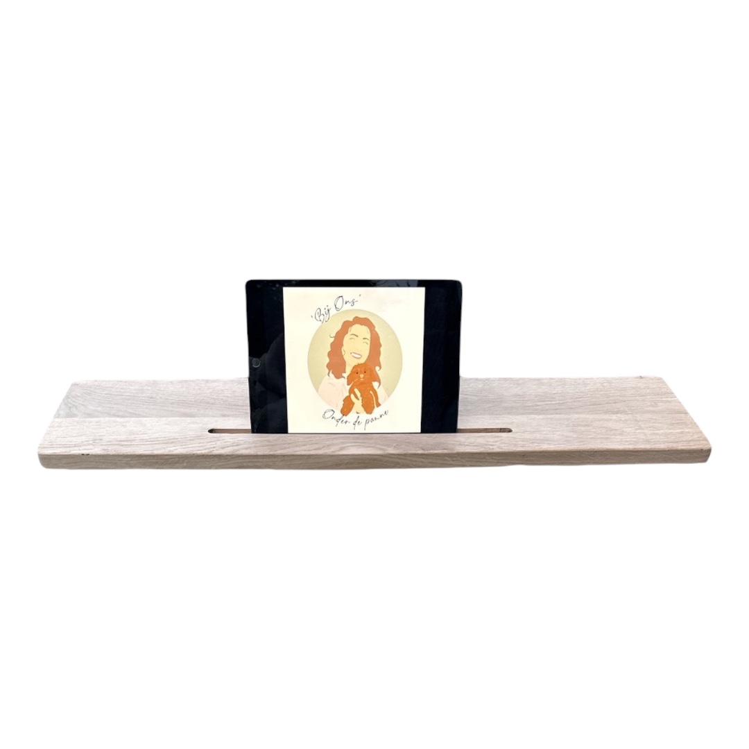 Nog niet overtuigd? Deze badplank is een absolute must-have voor je ontspanningsmomenten in bad. Je kunt er moeiteloos een boek, toffe woondecoratie zoals een kaars of plantje en een drankje op kwijt. Het badrek beschikt zelfs over een tablethouder waarmee je vrijwel elke tablet kunt plaatsen, met een gleuf van ongeveer 33 cm breed.